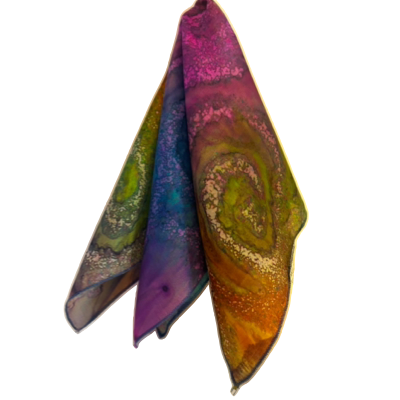 Mouchoir de poche fait de soie luxueuse peint à la main, unique et original.